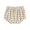 Off-white organic cotton tee dotted with pink petal flowers. Softness is the key word for this tee-shirt with its crew neckline and lovely balloon sleeves. The ribbed hem ends with a picot stitch and delicate topstitching. A small slit at the back, closed by natural mother-of-pearl buttons, lets you slip it on without damaging your little treasures’ ears or noses.