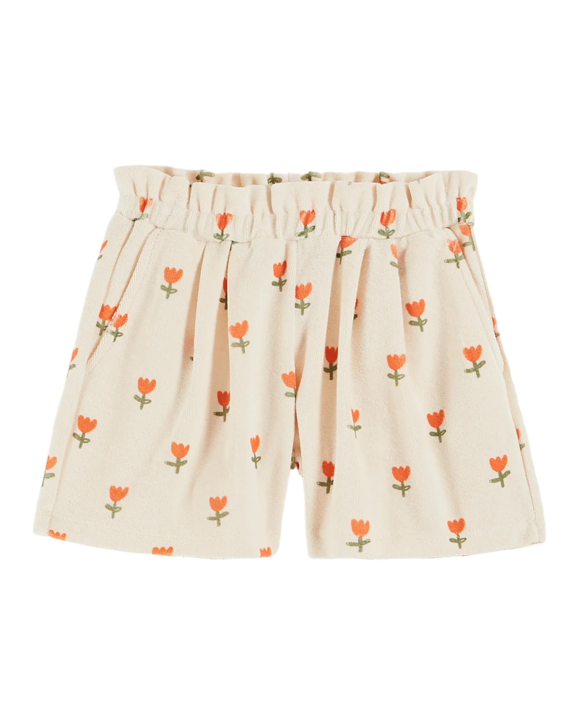 Emile et Ida Girl Cream Tulip Terry Shorts | Large Cream Tulip