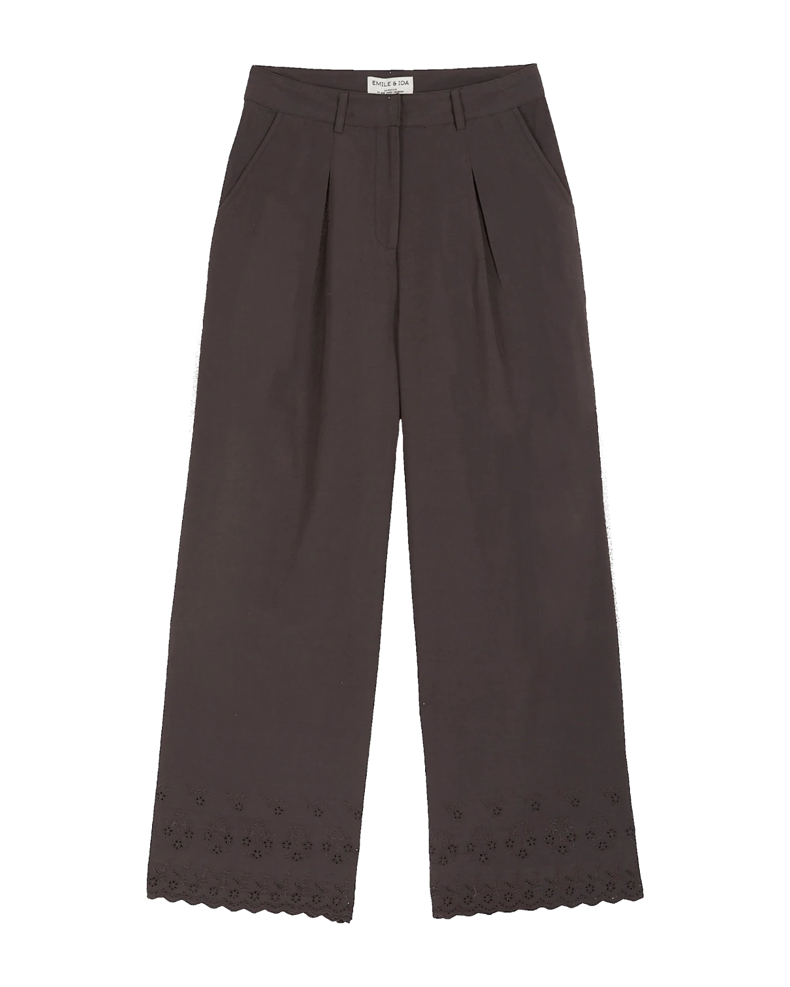Emile et Ida Women’s Asphalt English Embroidery Pants | Bitumen