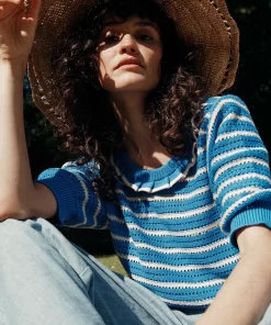 Be the first to review “Emile et Ida Women’s Blue Striped Short-sleeve Sweater | Lagoon” Cancel reply