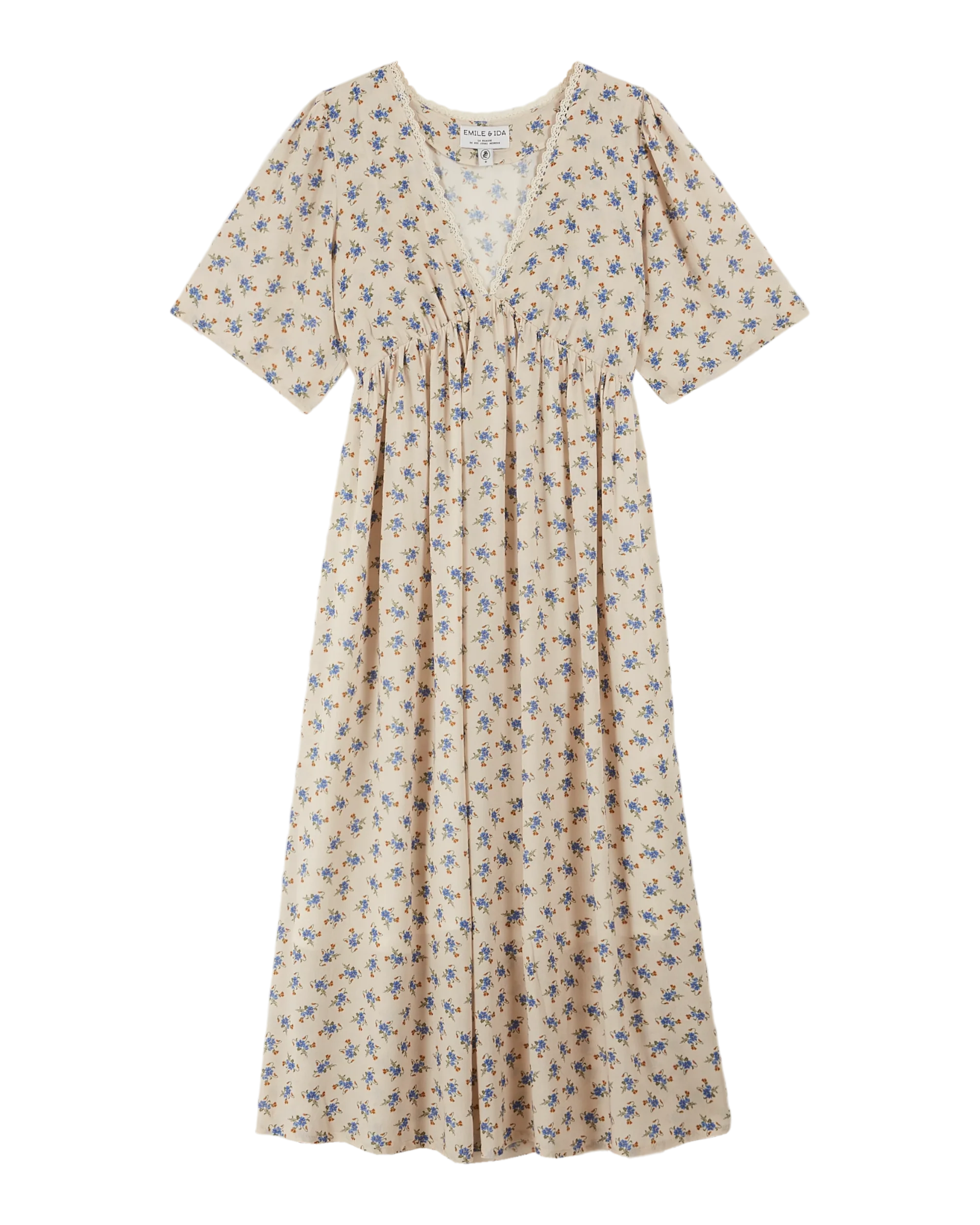 Be the first to review “Emile et Ida Women’s Ecru Long Dress With Blue Flowers | Clematis” Cancel reply