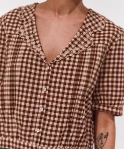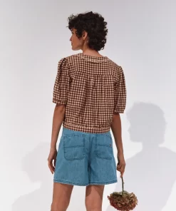 Emile et Ida Women’s Off-white And Chocolate Gingham Cotton Blouse | Vichy Choco