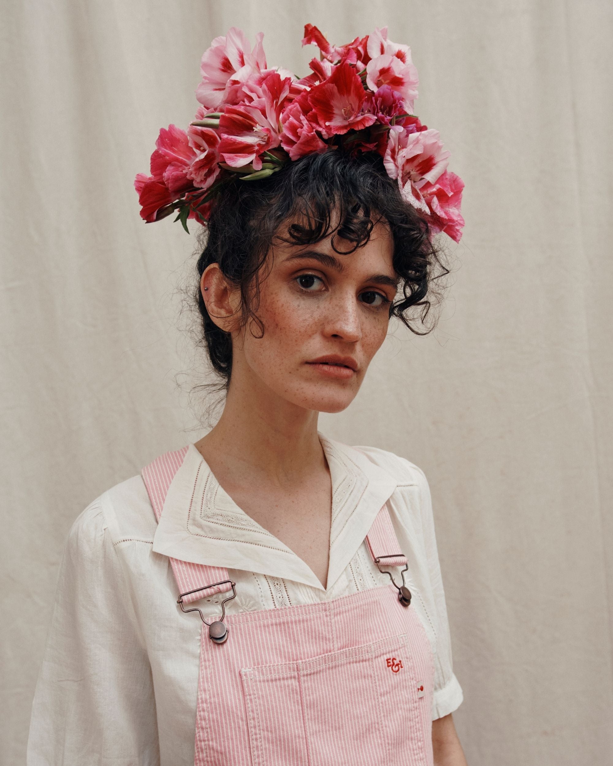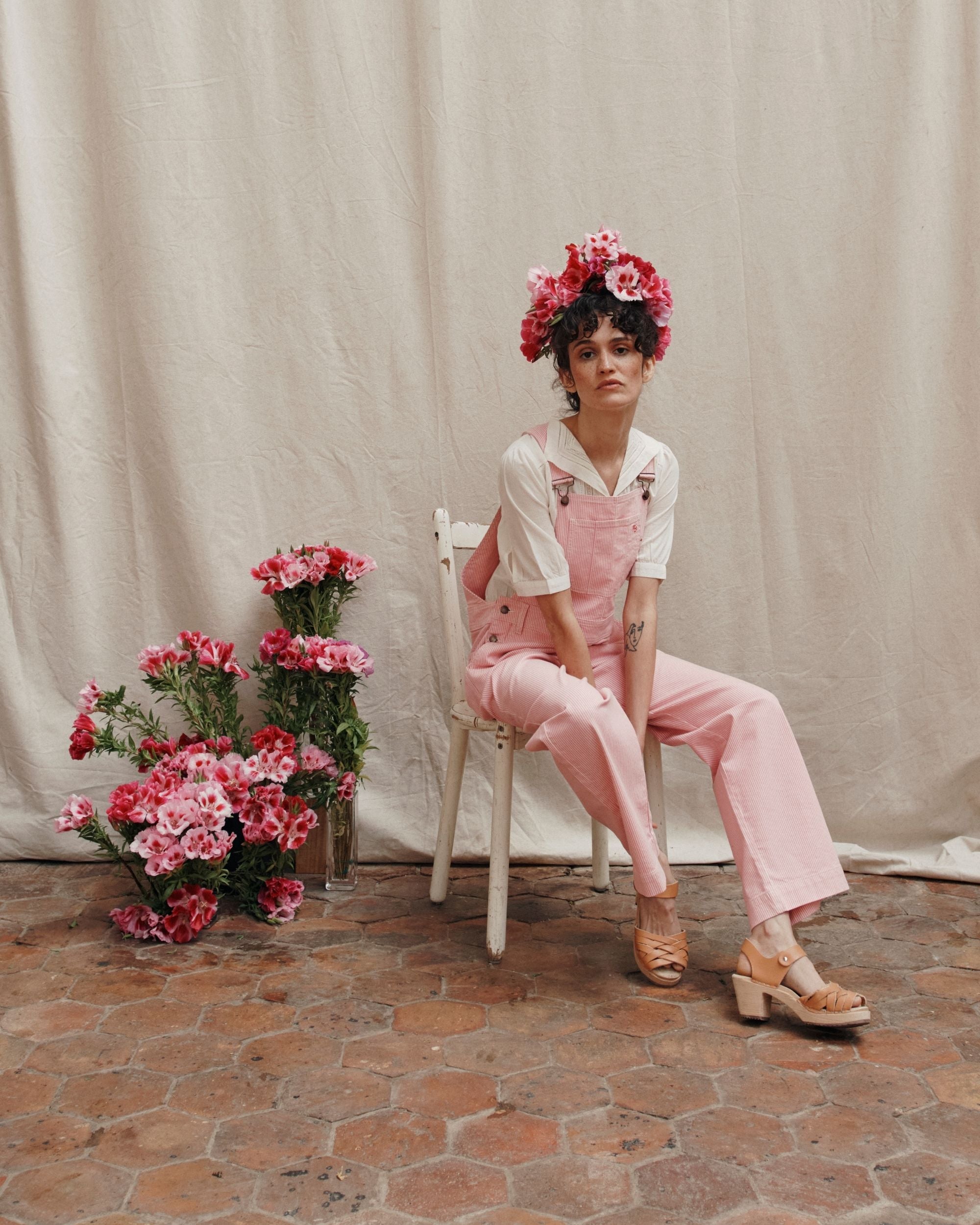 Emile et Ida Women’s Pink And White Striped Denim Overalls | Rose 1000r