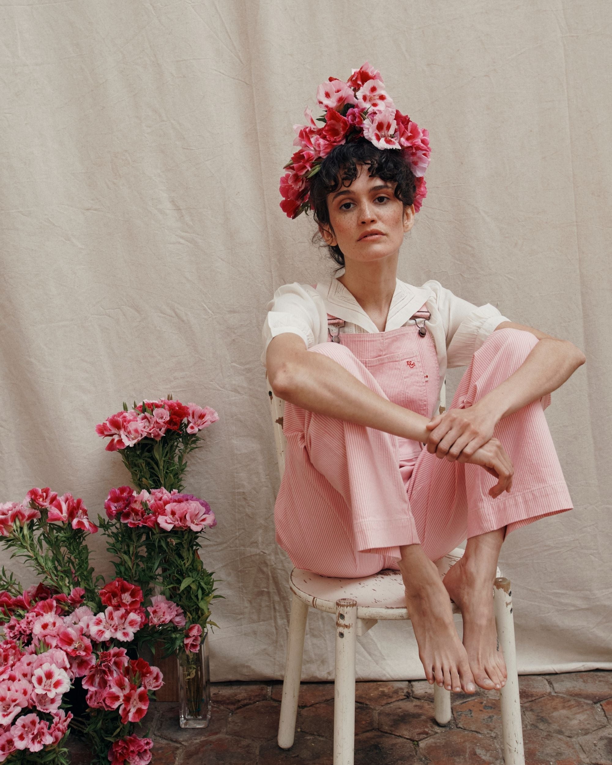 Overalls in white and pink striped denim cotton canvas, a sturdy, timeless fabric whose diagonal twill weave offers both comfort and style. The high back allows great freedom of movement, and the height-adjustable shoulder straps stay perfectly in place, preventing them from slipping down your arms.