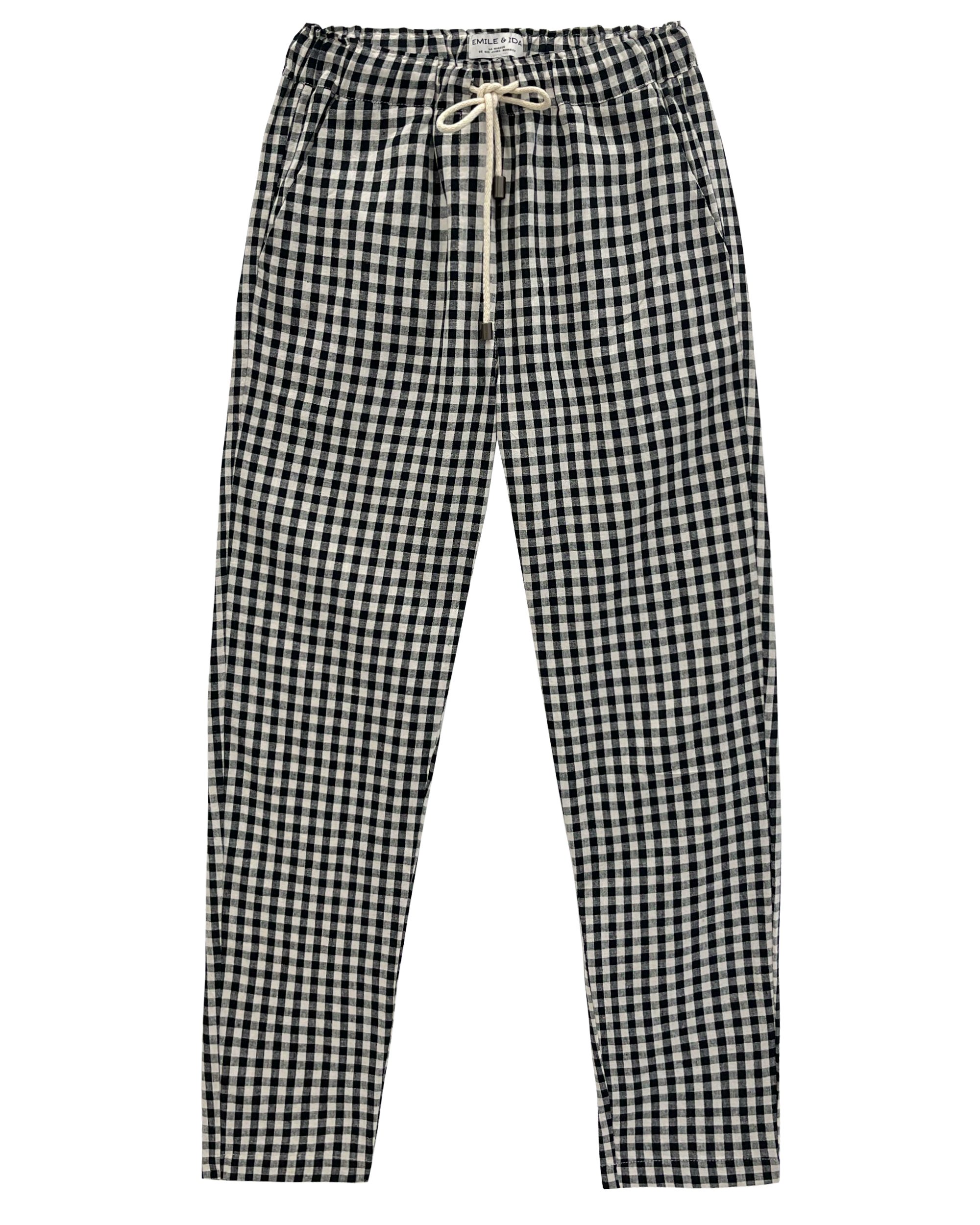 Emile et Ida Women’s Relaxed Fit Pants In Black Gingham Linen | Vichy