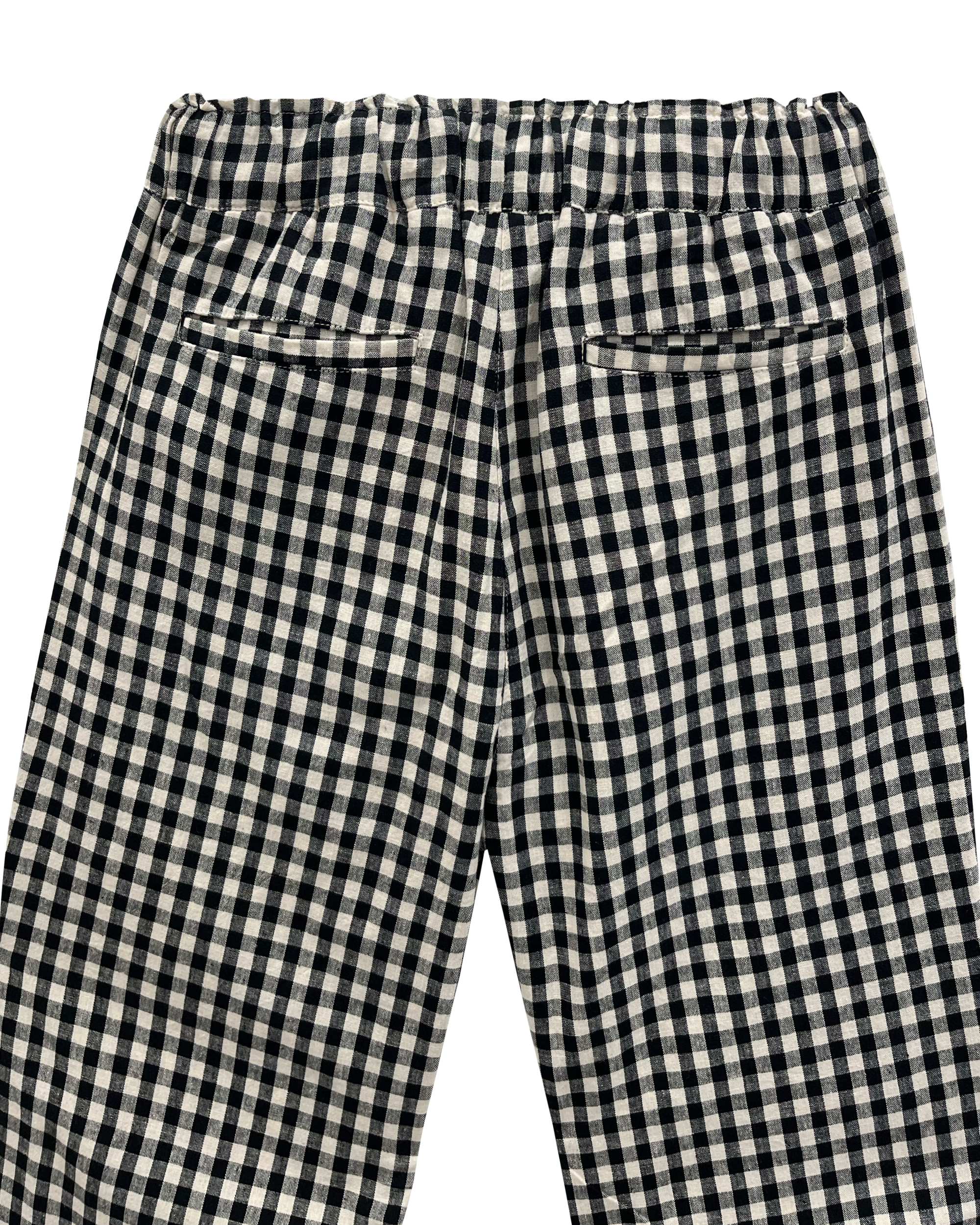 Black and white linen and cotton gingham pants. Pants that can be worn in any situation, both offering a casual and trendy look; At Emile et Ida, we’ve adopted the relaxed fit for its comfort: elasticated waistband with cotton drawstring, close to the legs without compressing them. It’s a cut that’s perfect for any body type! We’ve added two Italian pockets and two deep welt pockets on the buttocks. A basic pair of pants to adopt without delay. The fabric features irregularities specific to the weaving process. Size advice: we recommend you take your usual size.